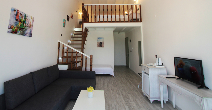 Deluxe loft katlı odalar, birinci sınıf yatakları, kaliteli tekstil malzemeleri, özel işlemeli havluları, ferah balkonları, oturma grupları ve geniş banyolarıyla, size evinizdeymiş hissi sağlar.